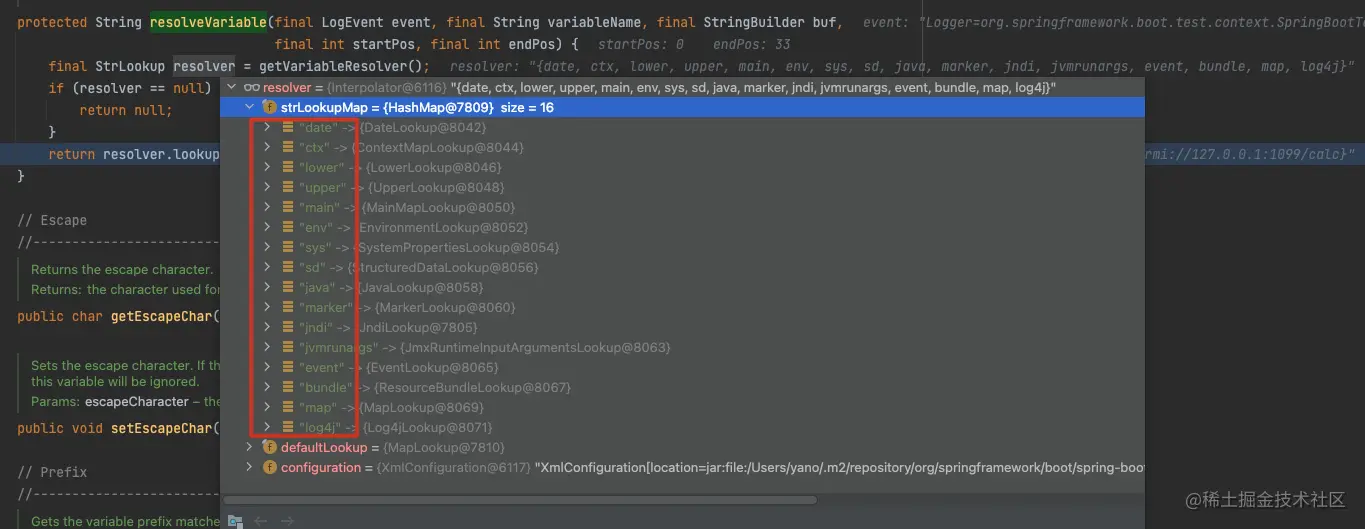 调用 org.apache.logging.log4j.core.lookup.StrSubstitutor#resolveVariable,将对应参数解析出结果。