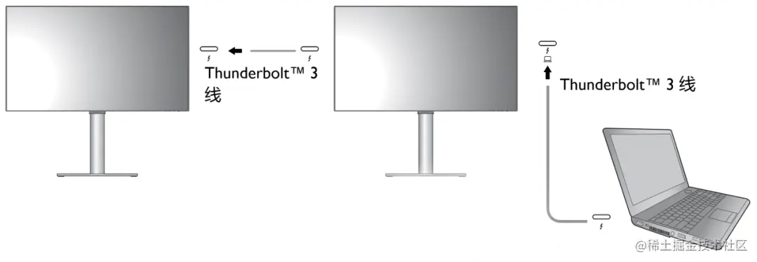 传输视频信号时用的是 DP Alternate Mode,相当于 DP 信号借用 USB Type-C 的接口传输,本质上还是 DP 信号,所以支持菊花链。