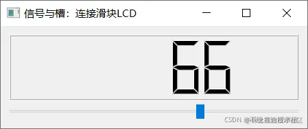 valueChanged()是QSlider 的一个信号函数,只要 slider 的值发生改变,它就会发射一个信号。还可以设置参数控制信号在什么时候发射,然后通过connect连接信号的接收控件,也就是lcd。槽是对信号的响应,这里是lcd.display,即更新LCD面板的数字信息。