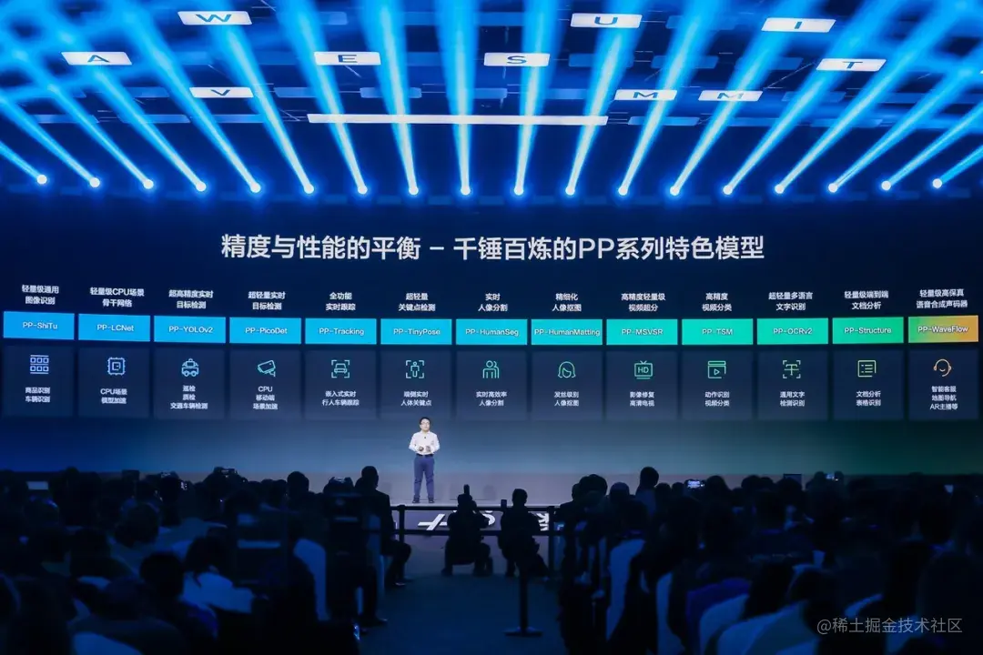 马艳军在会上表示,目前,百度飞桨官方支持的产业级开源算法模型超过400个,并发布13个PP系列模型,在精度和性能上达到平衡,将推理部署工具链彻底打通。