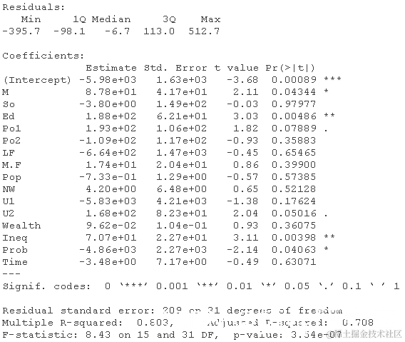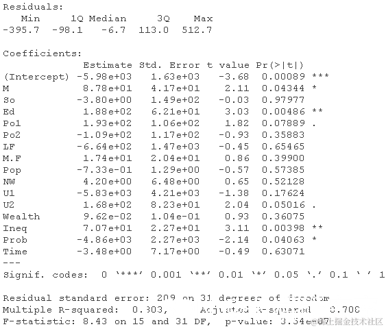 犯罪学家对惩罚制度对犯罪率的影响感兴趣。已使用汇总数据对此进行了研究。数据集包含以下列: