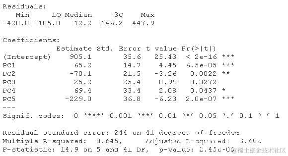 使用前五个PC,我们可以继续建立一个线性回归模型。
