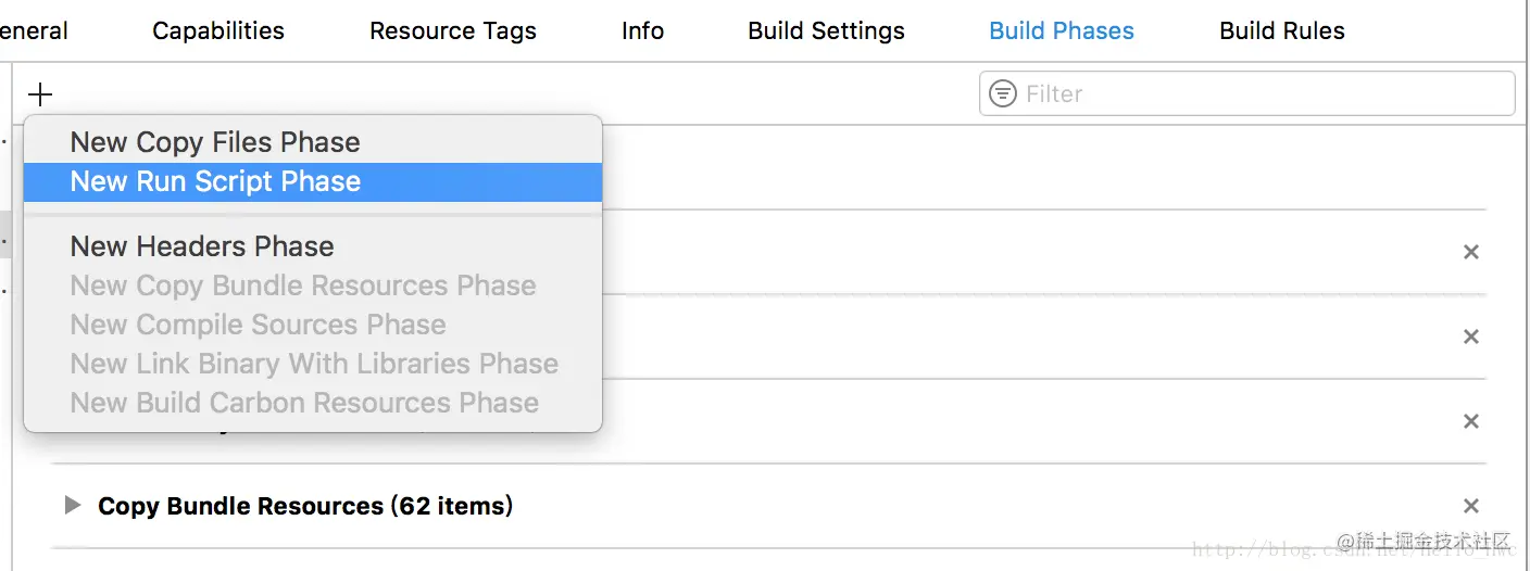 选择添加Run Script Phase
