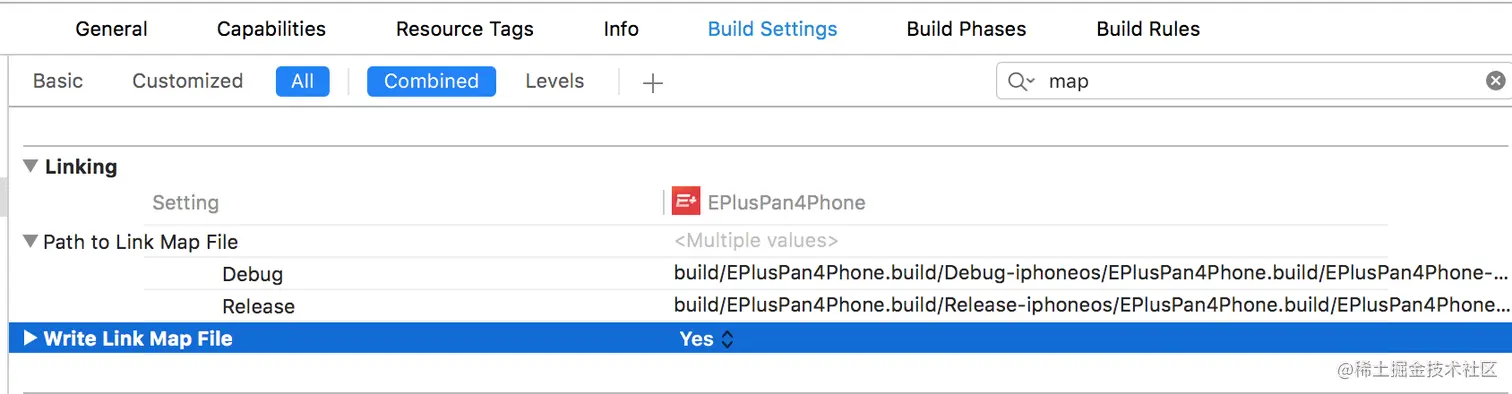在XCode -> Build Settings -> 搜索map -> 开启Write Link Map File
