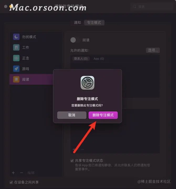 在弹窗上点击删除专注模式,那么就删除了一个多余的专注模式,其他的多余专注模式也可以如此去删掉。
