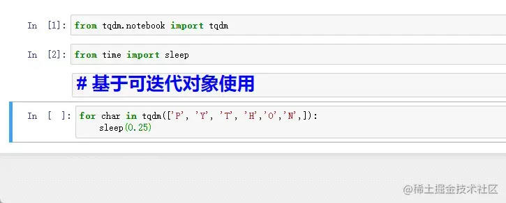 直接将可迭代对象传入 tqdm()。