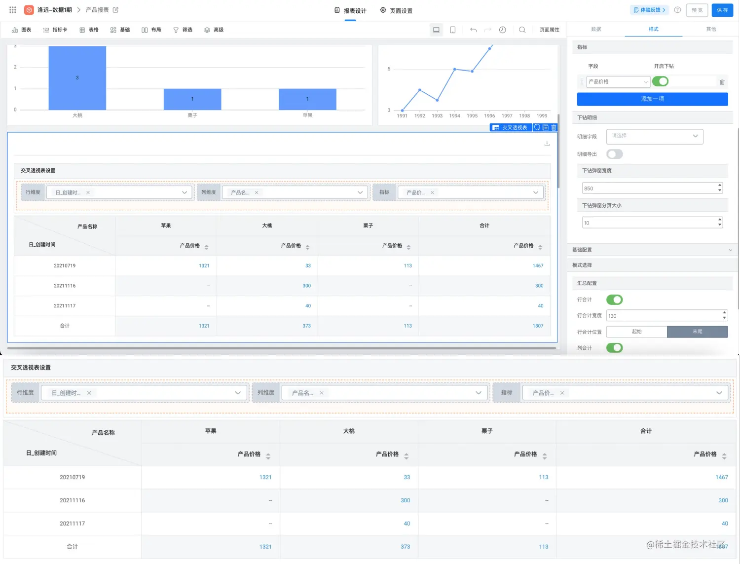 **「交叉透视表」**是日常分析中非常常用的可视化形式之一,提供了多级透视、指标合计、快捷过滤等功能,可以帮助大家更快捷地分析数据。