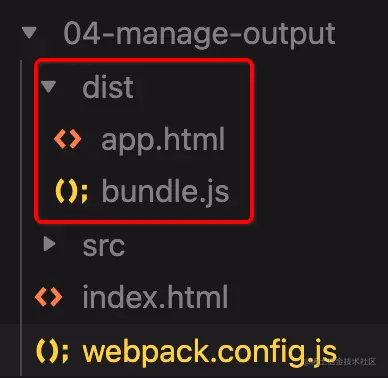 仔细留意一下,我们发现 dist/index.html仍旧存在,这个文件是上次生成的残留文件,已经没有用了。可见,webpack 将生成文件并放置在 /dist 文件夹中,但是它不会追踪哪些文件是实际在项目中用到的。通常比较推荐的做法是,在每次构建前清理 /dist 文件夹,这样只会生成用到的文件。让我们使用 output.clean 配置项实现这个需求。