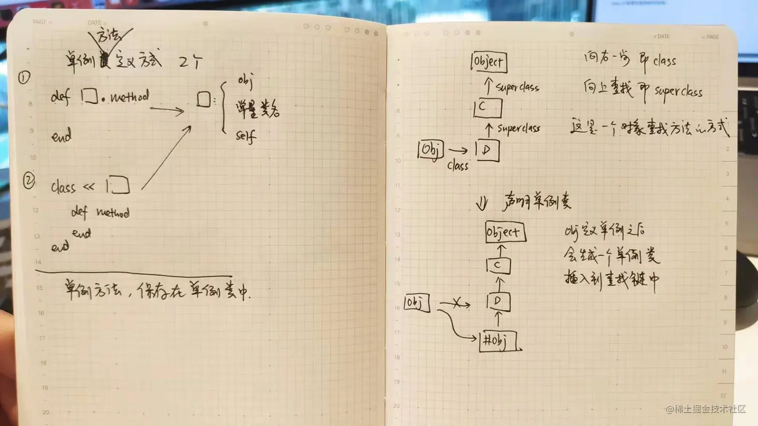 他会按照如图的方式,其实实例对象创造了一个 单例类 可以标记为 #obj ,用#表示单例类。 #obj会出现在对象和真正的类中间。
