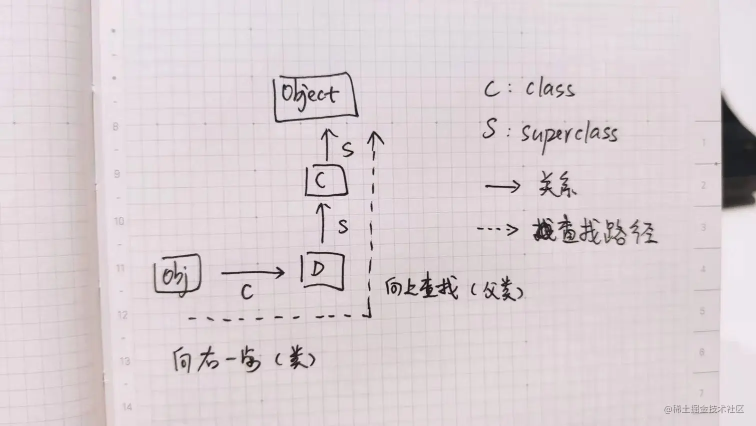 意思就是,向右寻找他的父,然后开始往上寻找继承关系,通过这种方式查找方法。
