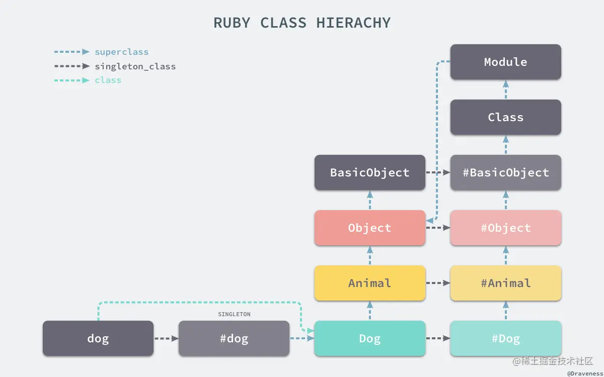 实际上我们是可以拿到 obj.singleton_class的,然后我们前面分析了一些结论,大致给出了一个对象的继承模型。
