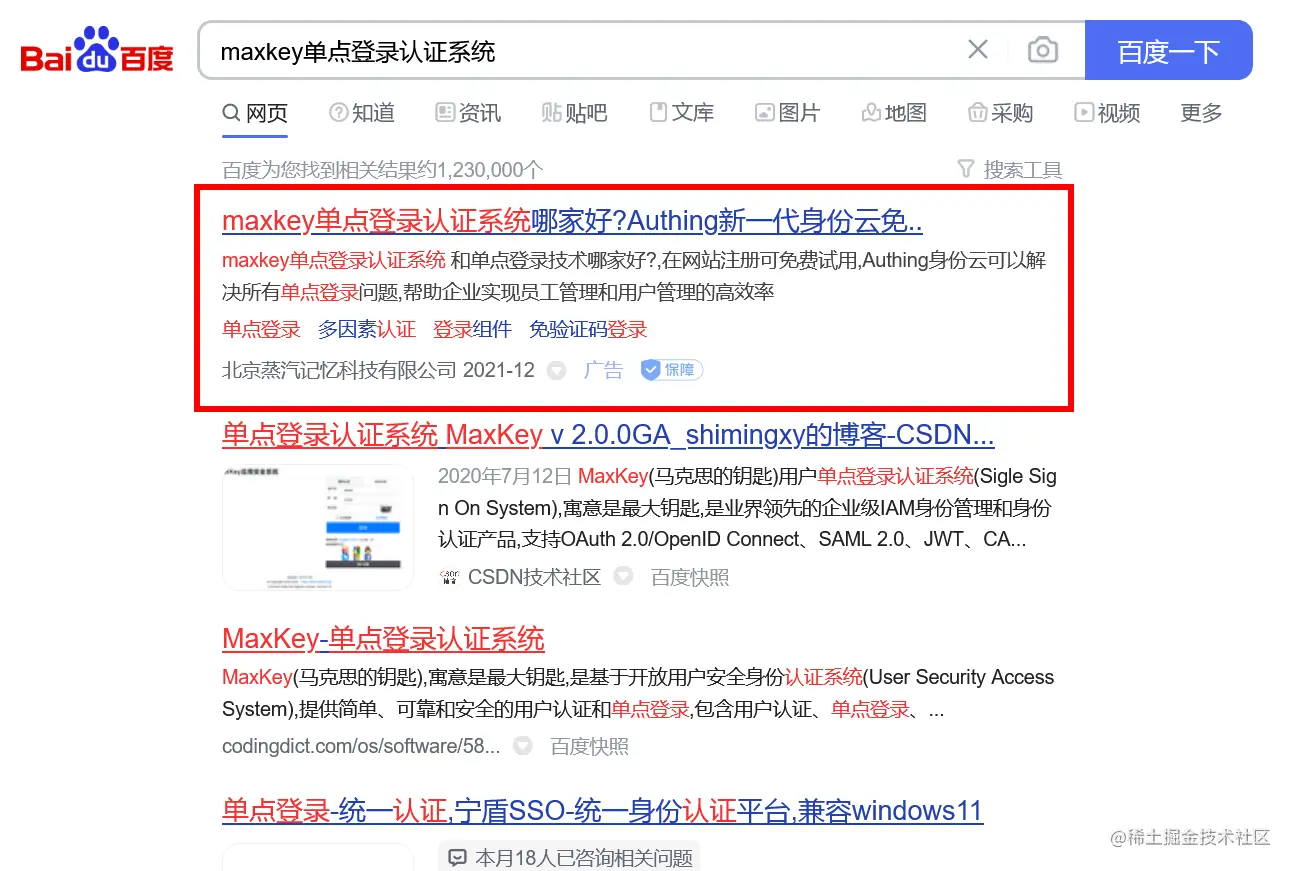 关于Authing.cn在百度搜索关键字“MaxKey单点登录认证系统”侵权的通告