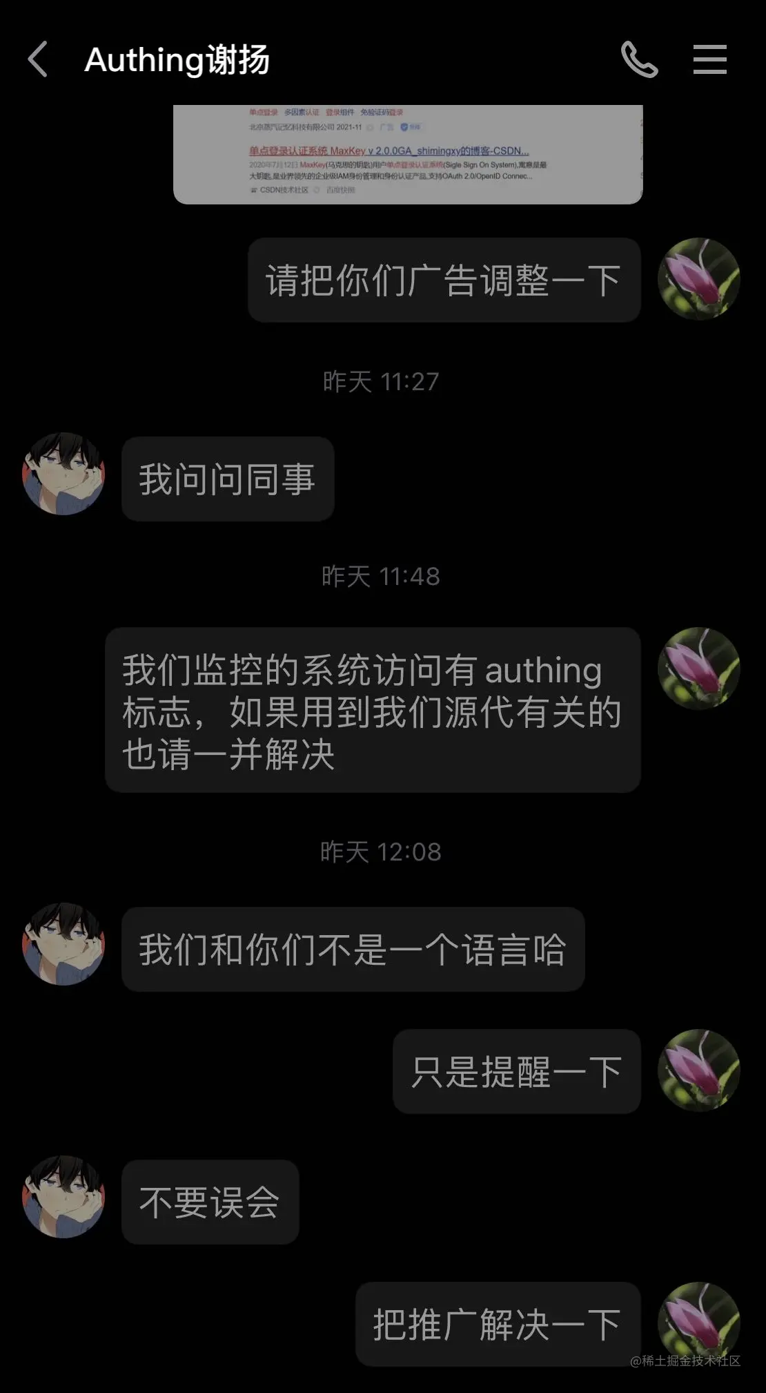 Authing(北京蒸汽记忆科技有限公司)旗下有产品和Dromara开源组织的MaxKey单点登录认证系统属于竞争关系,Authing明知故犯,误导了MaxKey单点登录认证系统的客户,侵害了Dromara开源组织的权益,触犯了《中华人民共和国著作权法》。