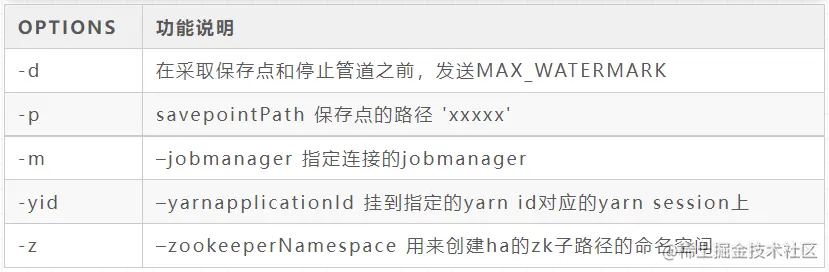 ./bin/flink stop [OPTIONS] <Job ID>