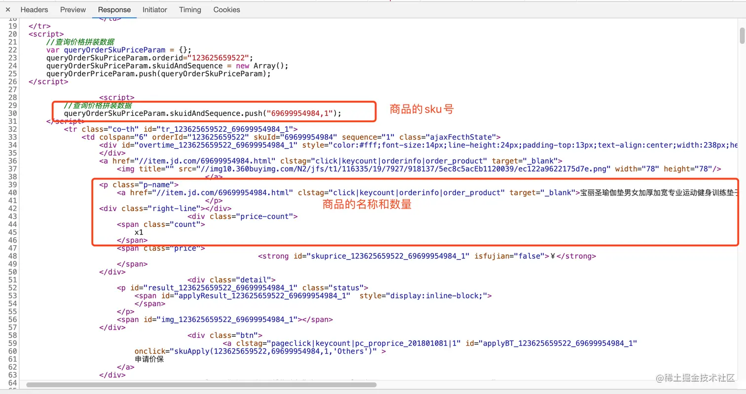 到这里已经取到了商品的当前价格、优惠券和购买数量,还剩下订单的下单价格需要获取,这个价格就是第一张图中的金额。我们使用订单号和 sku 号作为参数,批量查询下单价格