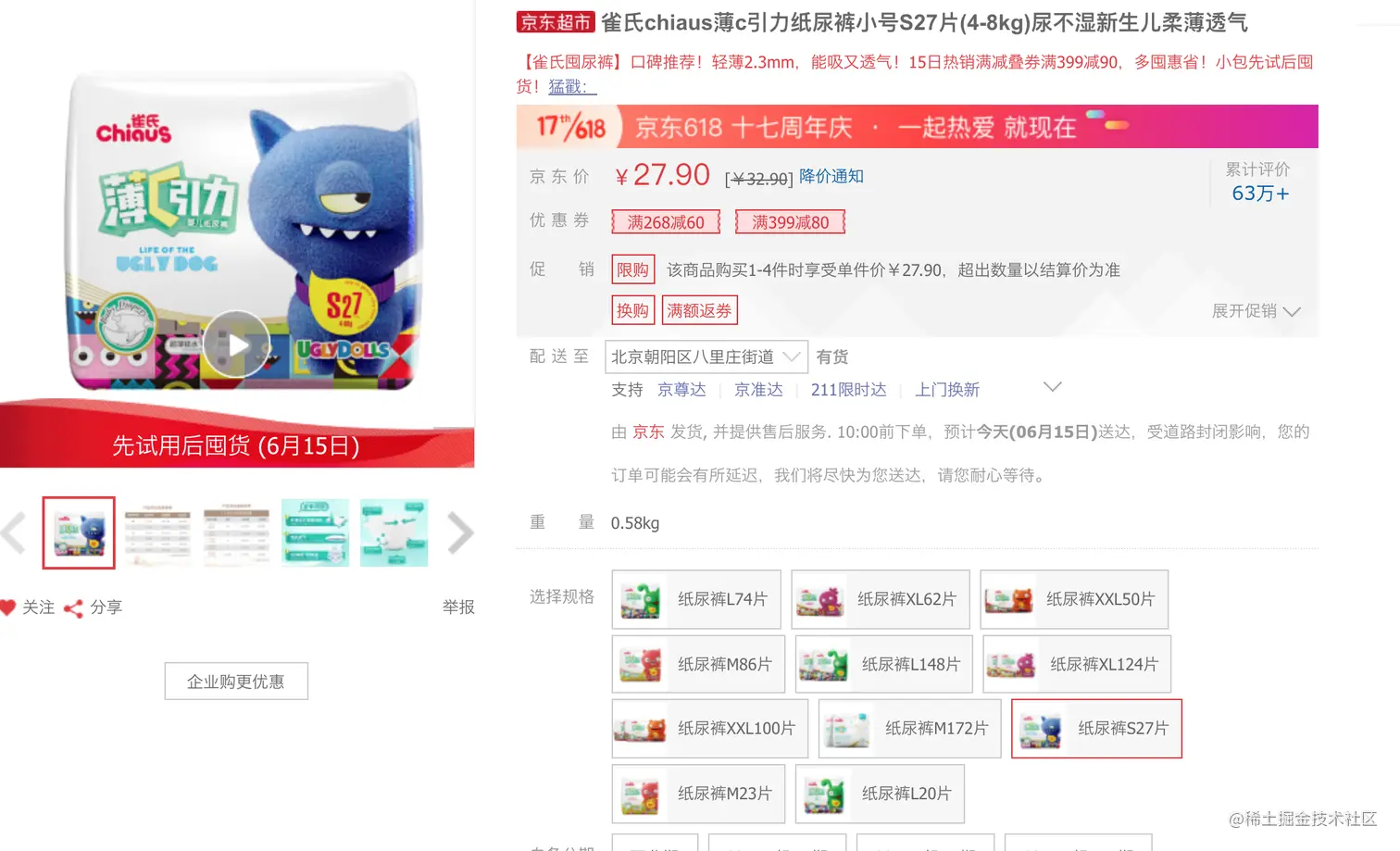 {'cat': '1319,1525,7057', 'venderId': '1000015389', 'shopId': '1000015389', 'skuId': '6839875', 'area': '1_72_55653_0', 'name': '雀氏chiaus薄c引力纸尿裤小号S27片(4-8kg)尿不湿新生儿柔薄透气'}
