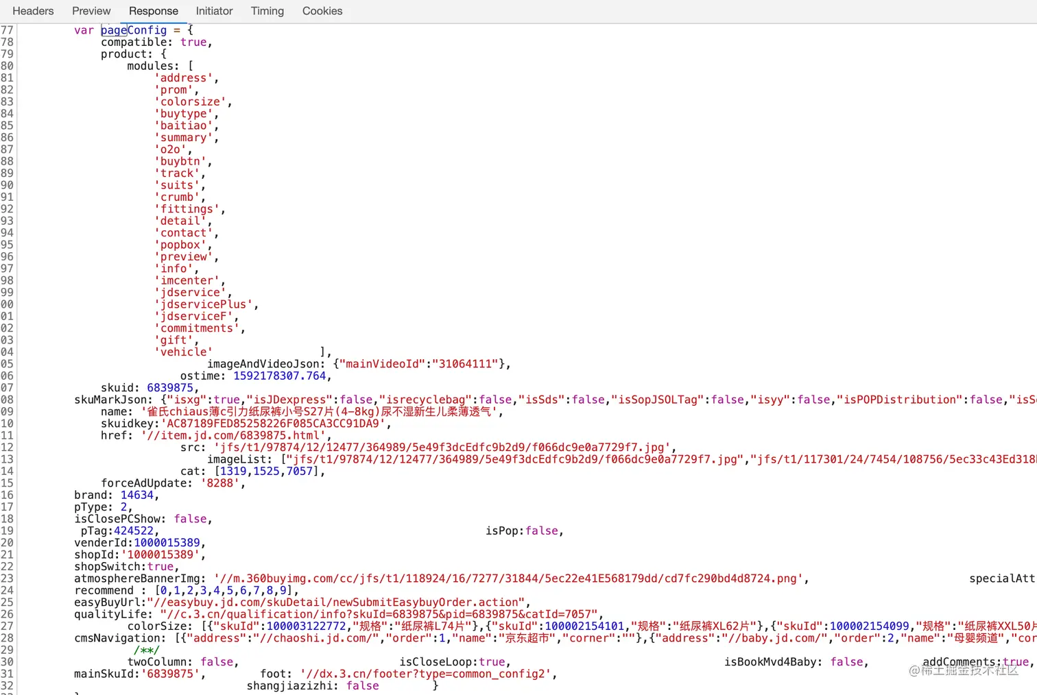 分析元素可知在页面的 js 中,pageConfig 变量有我们需要的所有数据,用正则表达式取出