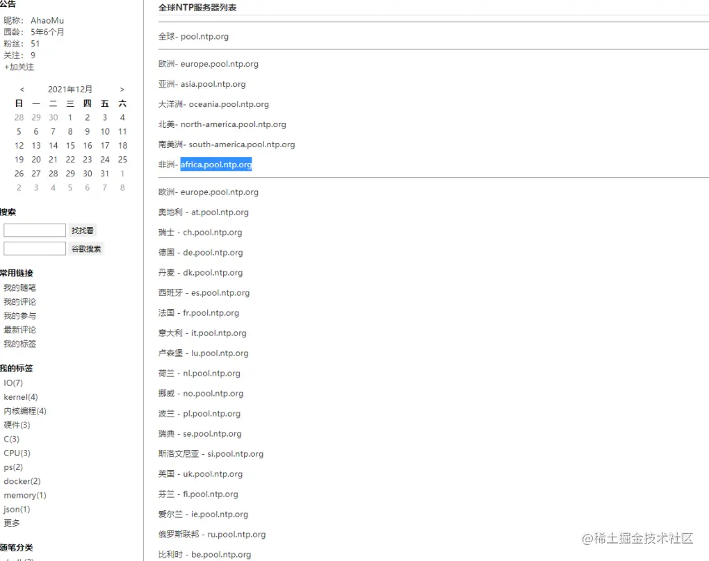 找到对应国家或地区的NTP服务器地址(这里以非洲为例):