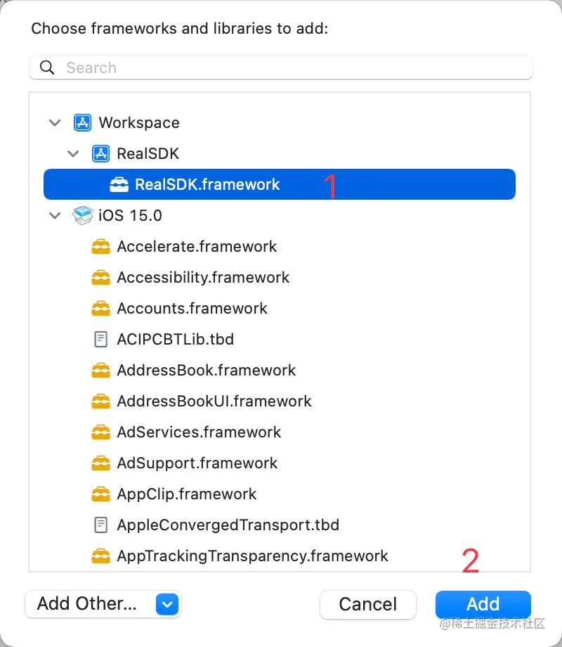 第六步:把 Framework 添加到 App 工程中