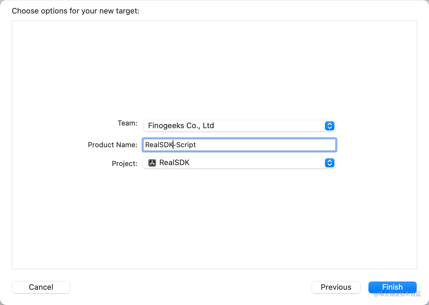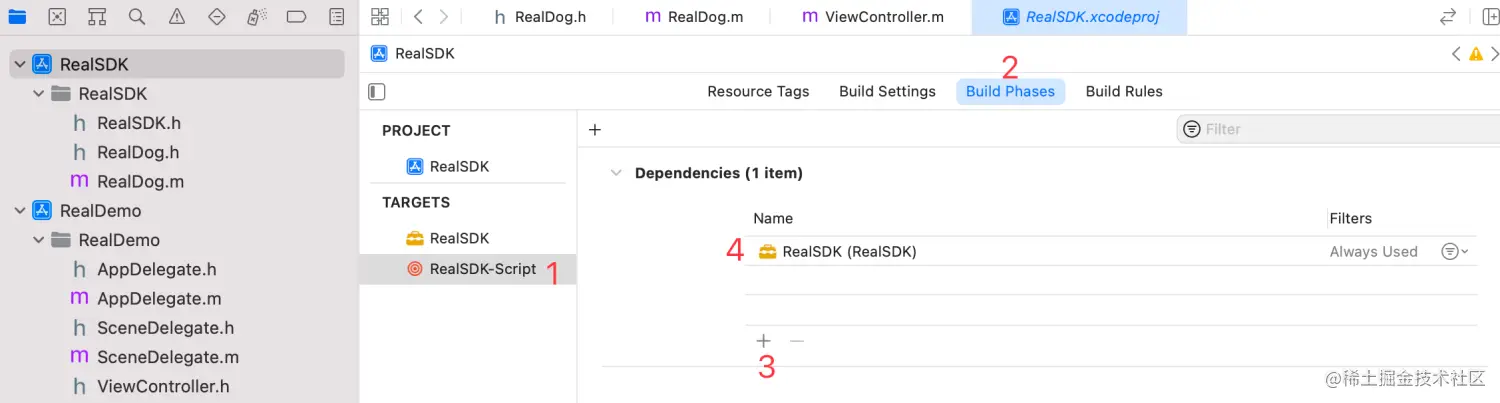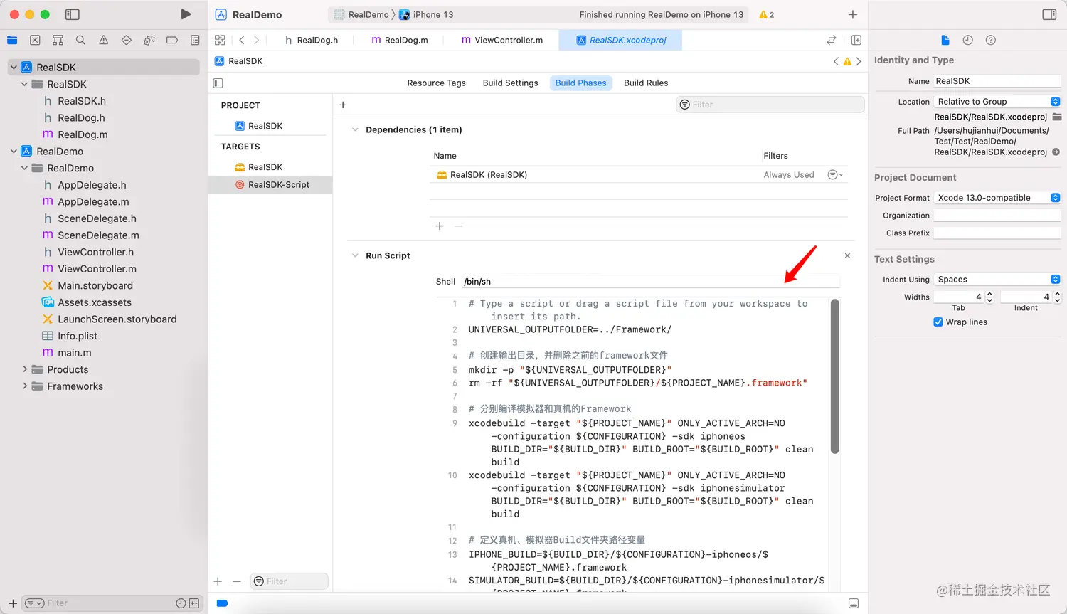 第二步:将 Aggregate Target 命名为“RealSDK-Script”