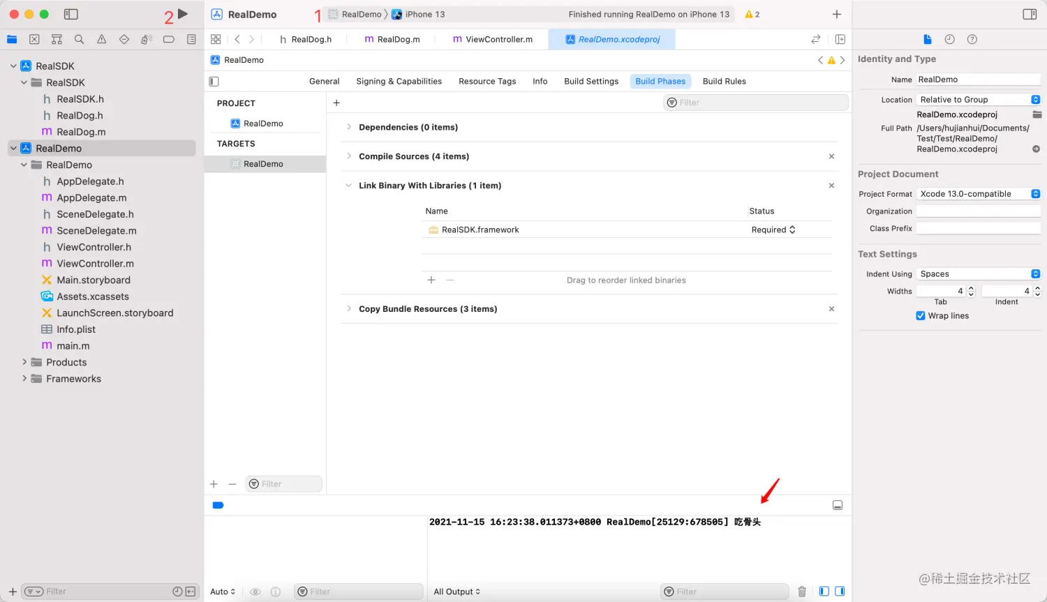 然后我们直接把需要连接的 Framework 工程(RealSDK.xcodeproj)和 App 工程(RealDemo.xcodeproj)拖进来就可以了!