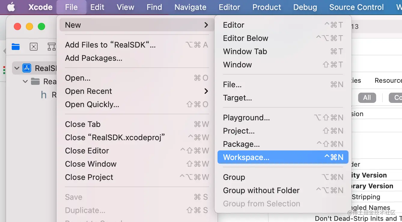 第二步:关闭 RealDemo 工程,然后在 RealDemo 目录下创建 Framework 工程,命名为 RealSDK