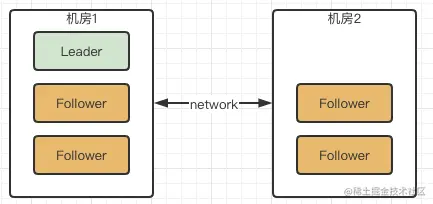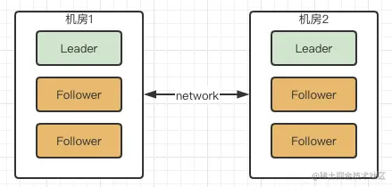 如果假设我们现在只有5台机器,也部署在两个机房: