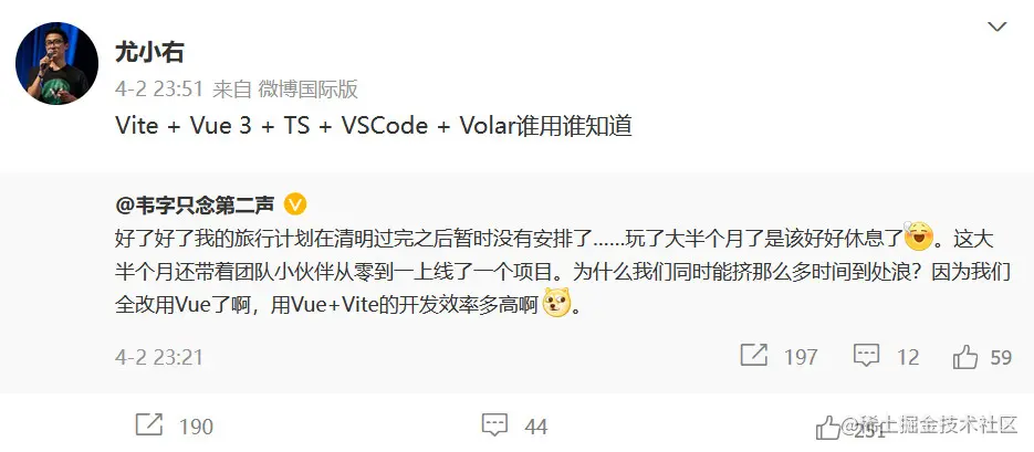 尤雨溪今年4月份的时候,在微博了发布了一条微博: