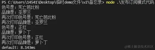 如上截图,我们看到订阅者接收到发布者的每个消息,但是呢,对于小美来说,她只想接收颜色为粉色的消息,不想接收颜色为红色的消息,为此我们需要对代码进行如下改造下,我们可以先增加一个key,使订阅者只订阅自己感兴趣的消息。