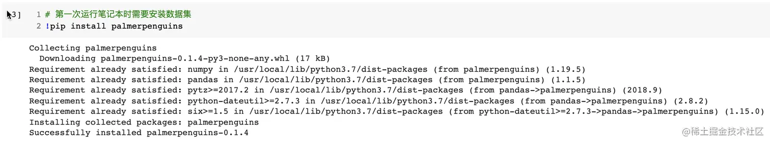 需要注意的是,企鹅数据集不是Scikit-learn内置的,需要单独进行安装。命令如下:
