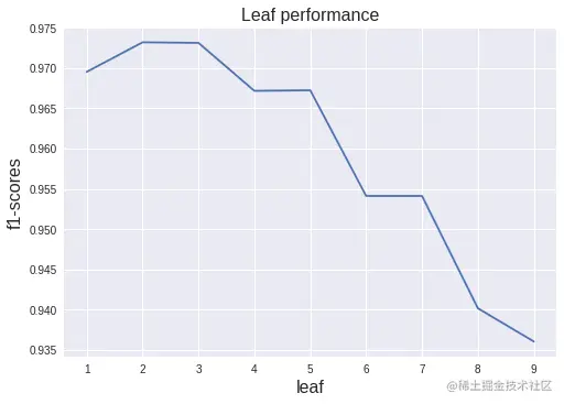- 和第二步类似,固定max_depth和min_samples_split,搜索min_samples_leaf的最佳区间。