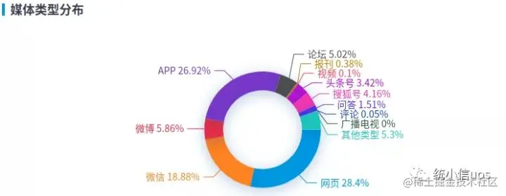 媒体类型方面,12月6日~12日,信创相关舆情主要集中在网站和APP平台,分别占28.4%和26.92%;其次是微信平台,占比18.88%;微博、论坛平台各占5.86%、5.02%;报刊、视频、头条号、搜狐号、问答等平台累计占14.92%。