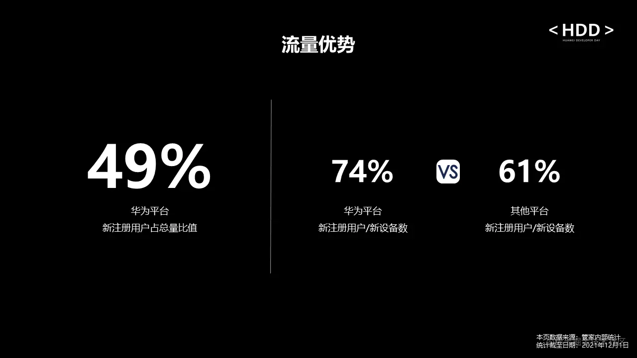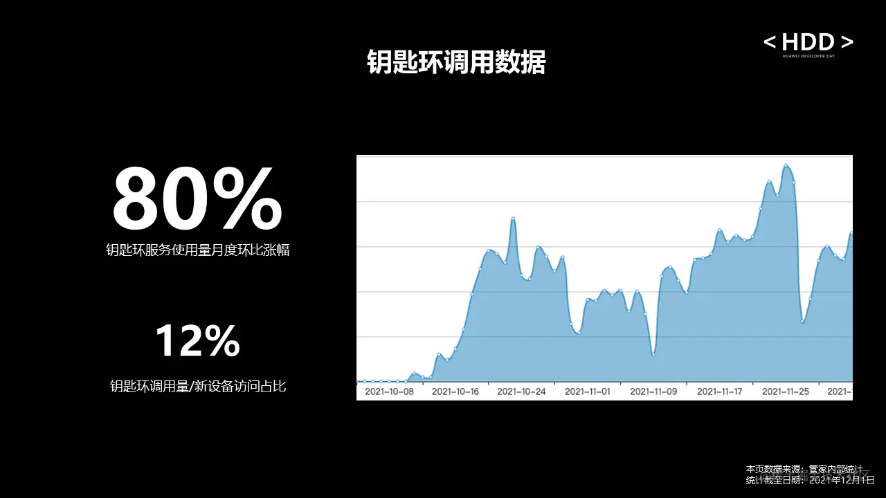 从用户质量来看,航班管家和高铁管家总用户中,华为平台新注册用户占49%,且华为平台在新设备上的新注册用户比例达到了74%,相较于其他平台数据比较可观。从用户体验来看,10月份上线以来,通过钥匙环服务跨应用和跨形态登录的用户月度环比涨幅达80%,可以看出用户普遍认可钥匙环服务的功能体验。从效果上看,新设备用户从打开APP到登录流量转化率提升了12%。最后,从成本来看,原来使用手机号验证码登录的用户,可改用钥匙环一键登录,降低了短信成本2.5%。