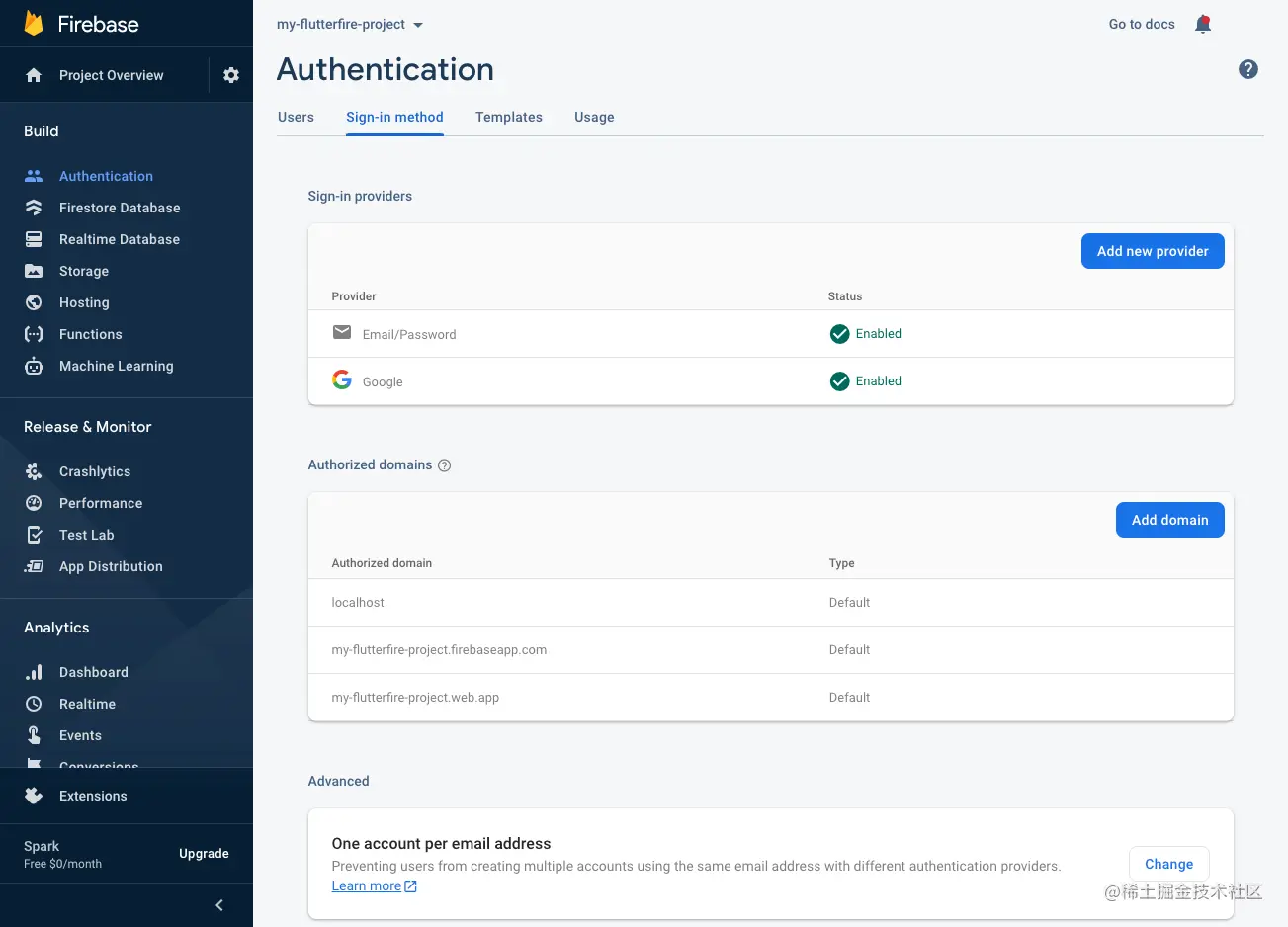 这段代码将首先初始化 Firebase,然后会发现用户尚未登陆进而显示登录界面,SigninScreen widget 配置了邮件和 Google 账号登陆,代码里还使用了 firebase_auth package 来监测用户的身份验证状态,因此一旦用户登录完成,你就可以显示接下来的应用内容。使用这个代码片段,你将可以在所有 Firebase 支持的平台上完成身份验证功能。
