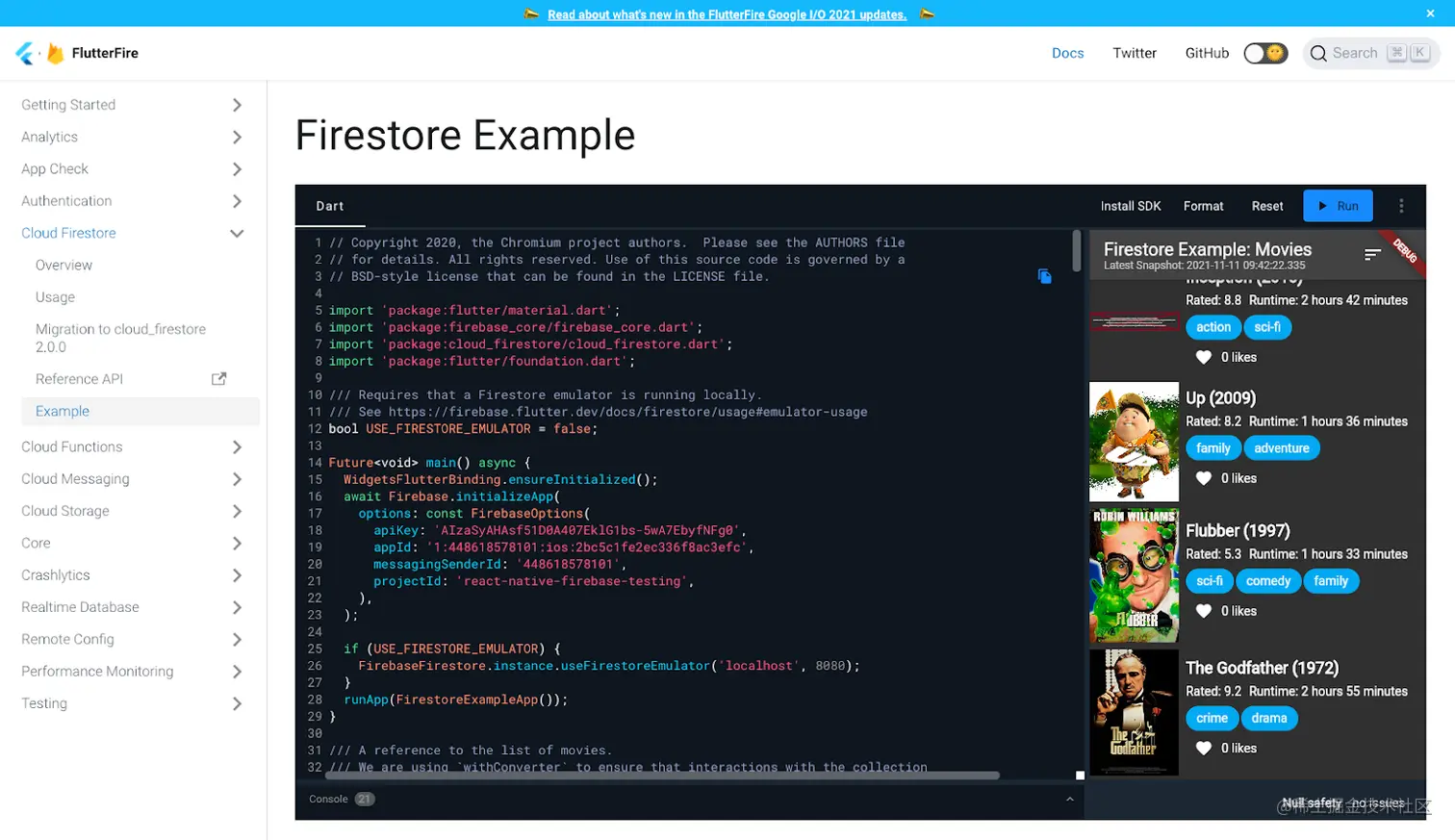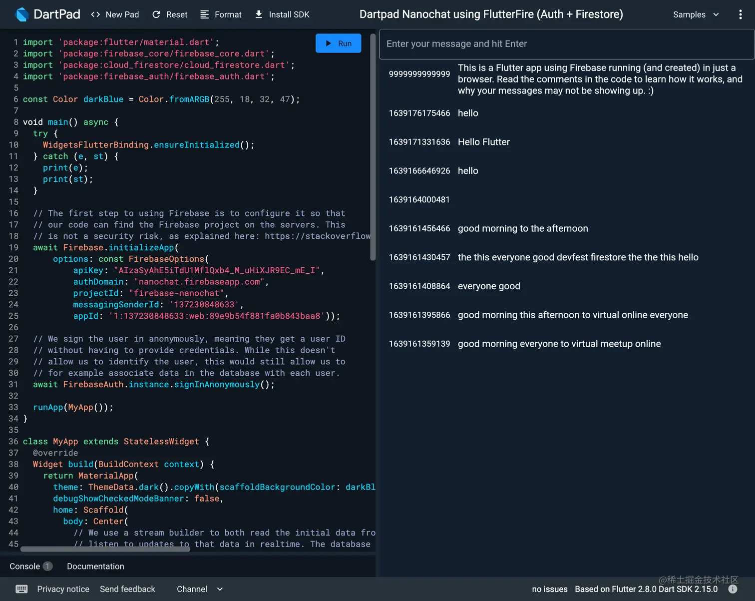 - DartPad 开始支持部分 Firebase 服务,方便线上使用和体验