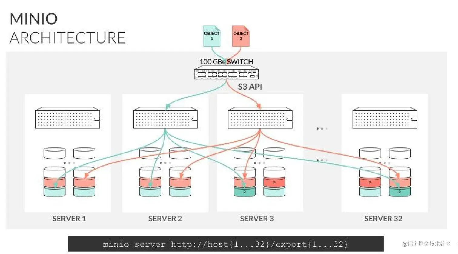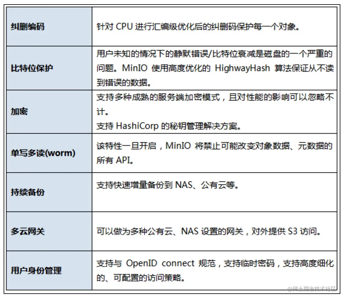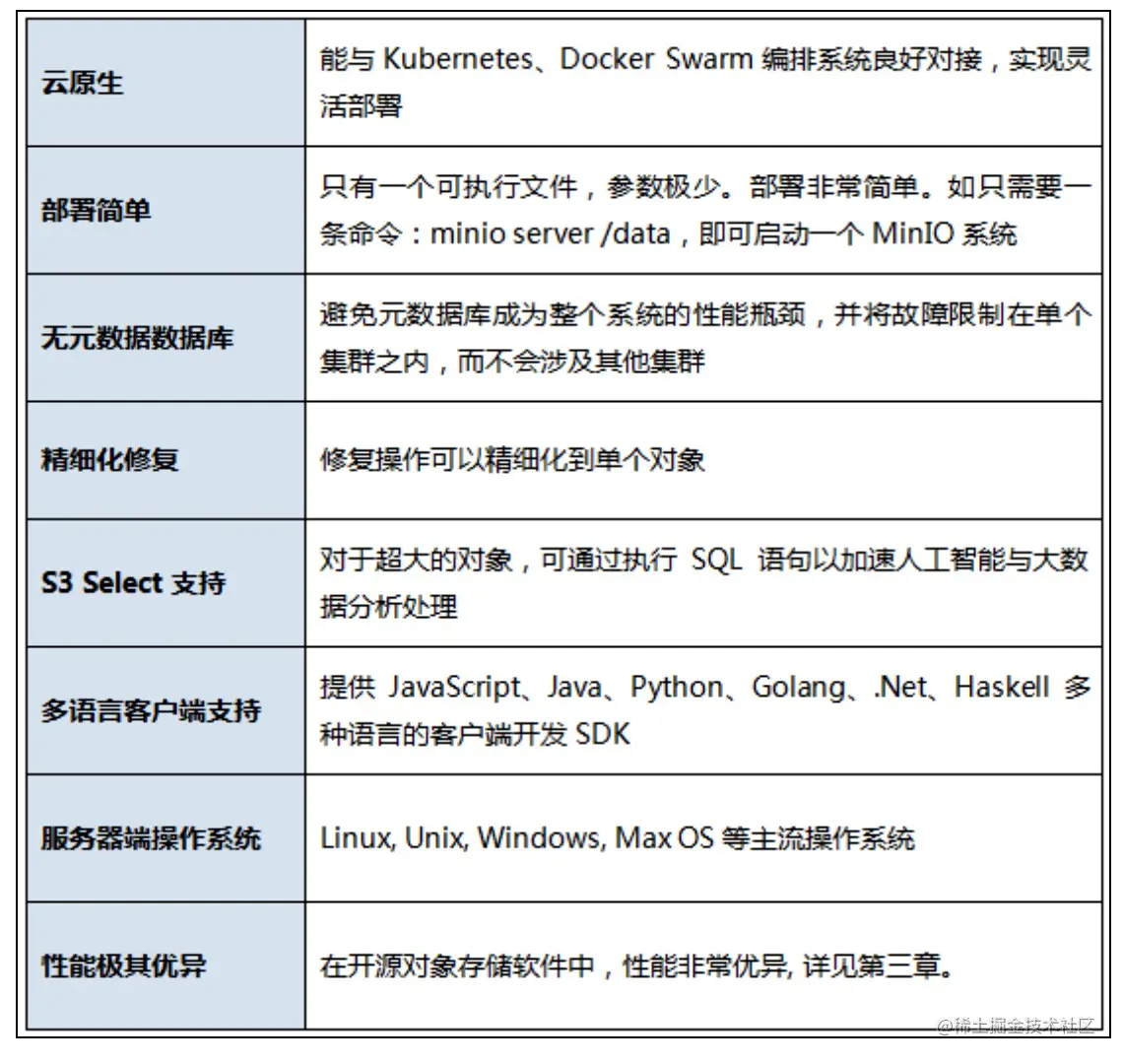 MinIO在设计上汲取了GlusterFS的相关经验与教训,系统复杂度上作了大量简化。