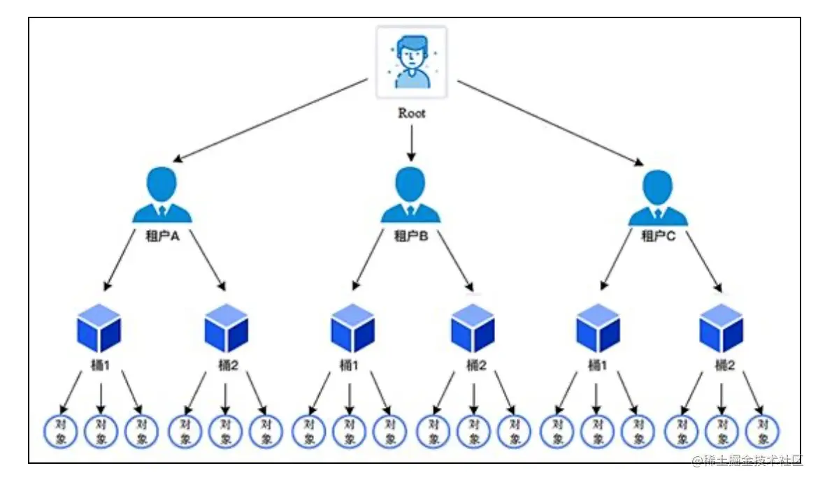 租户:用于隔离存储资源。在租户之下可以建立桶、存储对象。