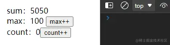 结果如下图所示,更新count时,并不会重新调用getSum。只有max变化时,才会重新调用getSum,减少了不必要的函数调用和渲染,实现了优化。