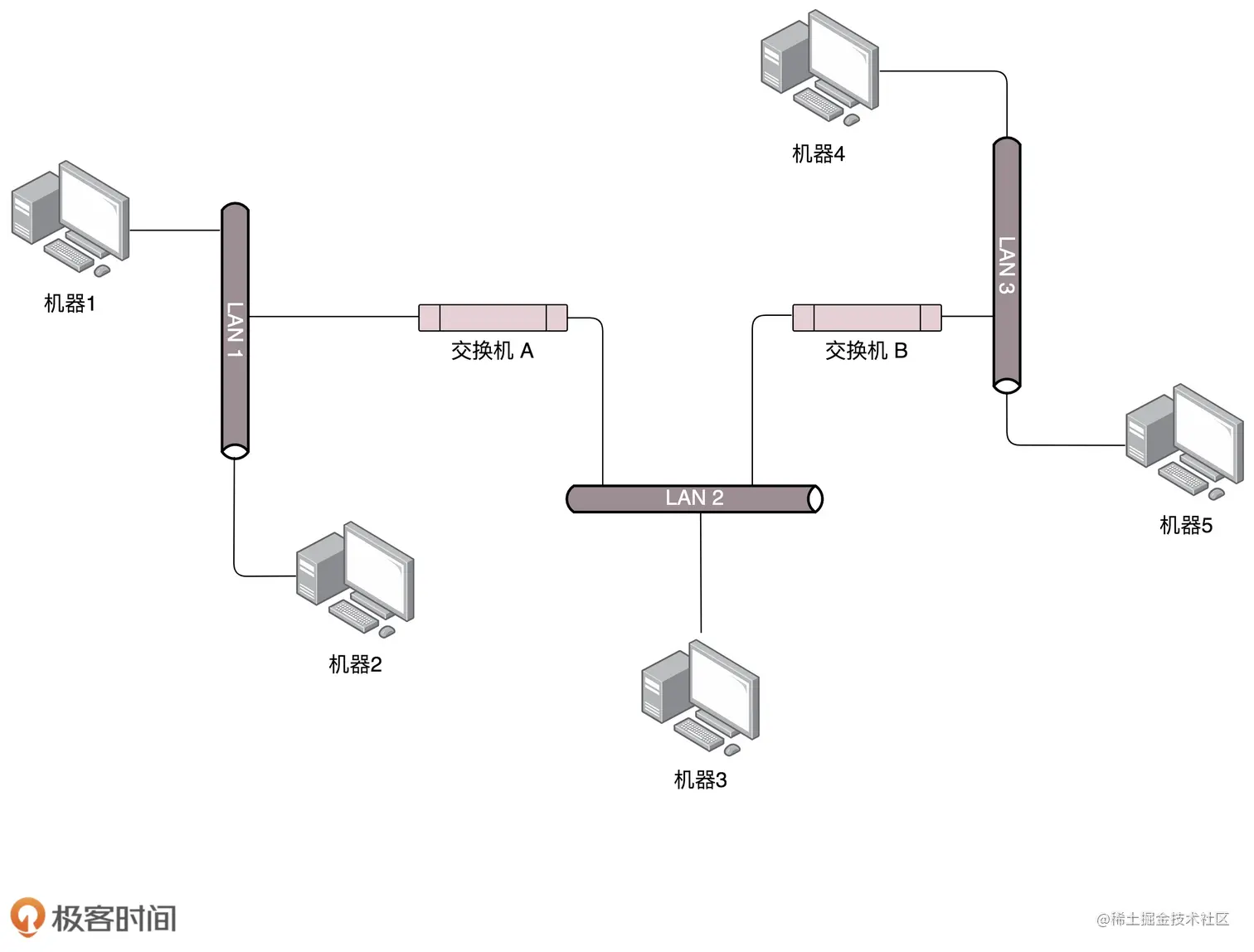 - 多台交换机形成拓扑结构