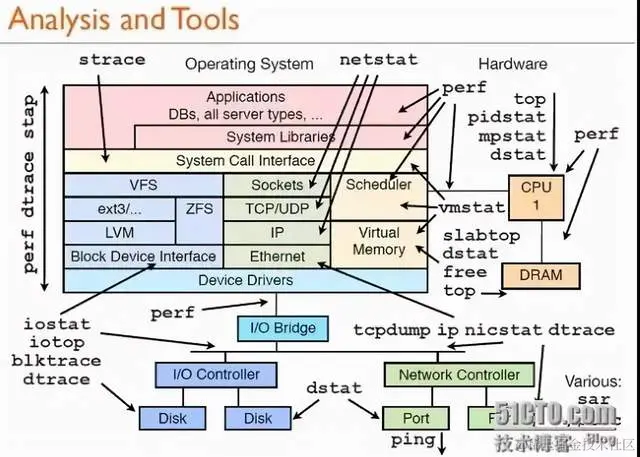 分析一项系统资源时,使用多种工具,往往有意想不到的结果。不及胜于过之(宁愿少做一点,不要做过头了,性能已达到要求就不要随意乱动,做好你的监控)。