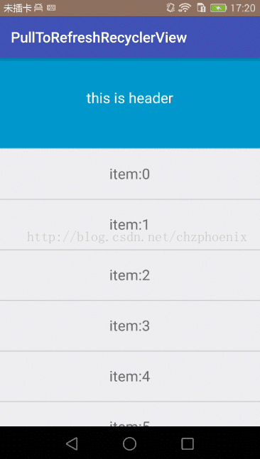 由于基于pulltorefresh库,所有功能库中都实现了,所以重写这几个方法就能实现下拉刷新功能了。实现效果如下