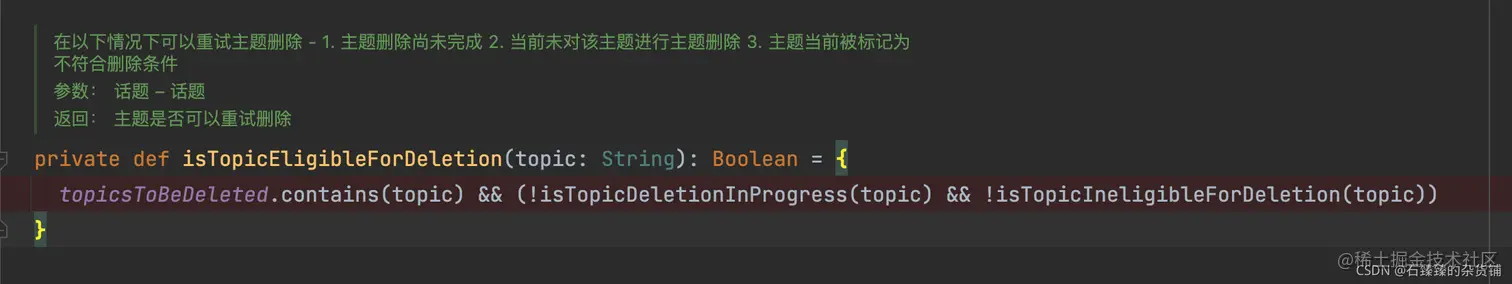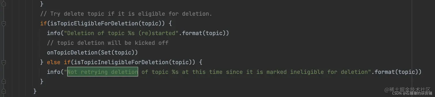 3、前面2个说完了,接着说一下topicsIneligibleForDeletion到底是什么,什么情况下才会放到这里面来呢?
