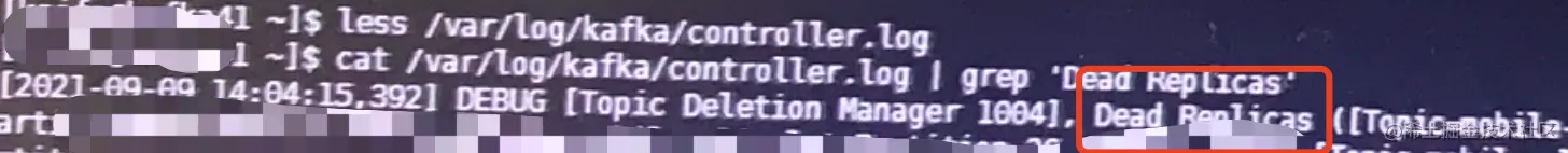 然后让查询Dead Replicas (%s) found for topic %s (这个表示的是哪些副本离线了) 也查询到如下