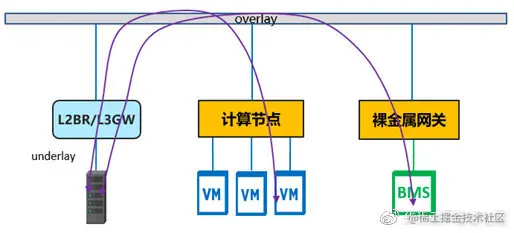 企业业务上云是一个渐进的过程,在这个过程中,会存在部分业务部署在云上,部分业务部署在非云形态的传统物理机上,也就是说企业的业务网络是覆盖云上云下的混合组网;在这种业务场景下,云平台需要提供一种传统的物理underlay网络和云上的虚拟overlay网络互通的能力,比如L2/L3互通,技术上来说,是能够提供云平台可控的L2BR/L3GW网元。