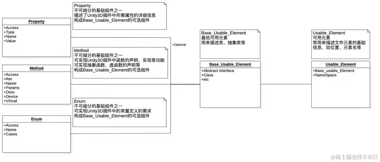 通过对插件组成元素的解析操作,我们可以确认模板可操作的最小组成元素单位是: Property、Method及Enum,以此为基础的可用组成元素是: Class、Interface、Namespace等,进而得到组成元素的构成信息及不同元素间的相互关系信息。这些信息是插件模板信息流的组成元素。