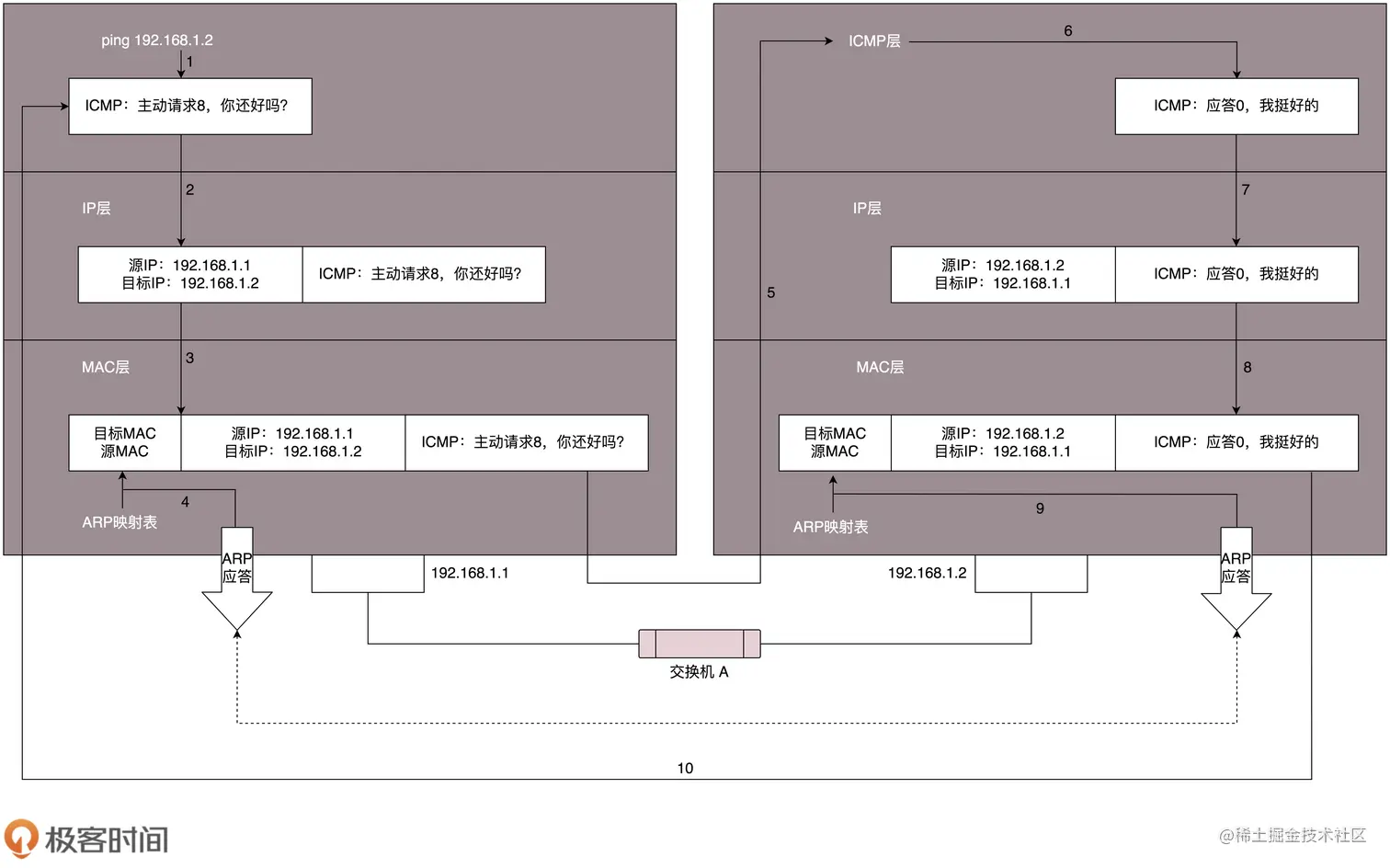 主机B检查MAC地址,IP地址,并返回类型=0+顺序号发送给主机A