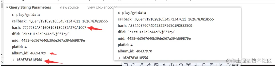 将多个网址数据进行对比看看哪些参数是需要自行修改的