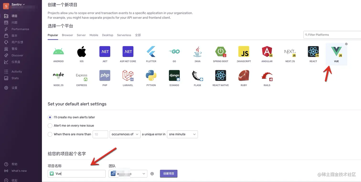 三、项目接入 Sentry