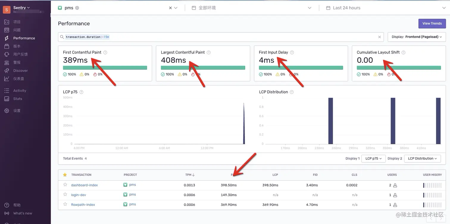 - USER MISERY: 对响应时间难以忍受的用户指标,由 sentry 计算出来,阈值可以动态修改